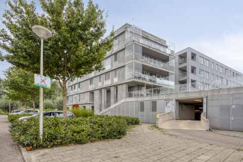 Via de keurige entree bereikt u het binnenplein op de eerste verdieping. Aan dit binnenplein grenst ook de entree van de woning. Bij binnenkomst valt u gelijk op dat de woning heel veel lichtinval heeft door de grote raampartijen. De royale woonkamer heeft dubbele openslaande deuren naar het woningbrede balkon (Zuid). De keuken is gesitueerd aan de voorzijde en is afgewerkt in een neutrale, moderne stijl en is van alle gemakken voorzien.